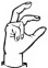 На ћирилици написано МАЛИША БРЗИЋ састоји се из 11 слова [?]. Исписано ћириличном једноручном азбуком за глувонеме: